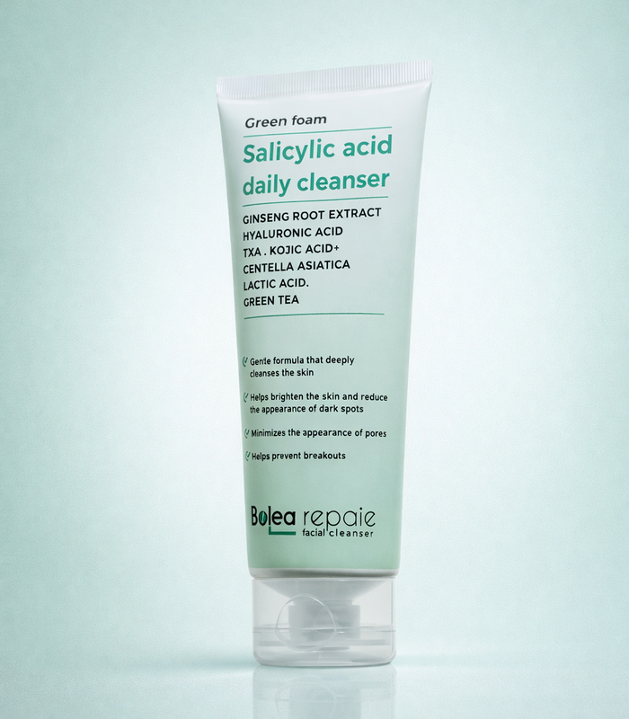 هو منظف يومي لطيف يعمل بفعالية على تنظيف البشرة بعمق وإزالة الشوائب والدهون الزائدة دون التسبب في جفاف البشرة. يحتوي على حمض الساليسيليك المعروف بقدرته على تنظيف المسام وتقليل ظهور الحبوب، كما يدعم تجديد البشرة وتحسين ملمسها.